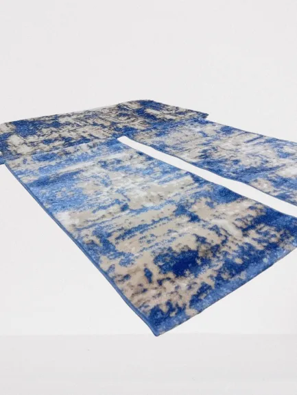3 tapis modernes aux motifs abstraits bleu et crème.