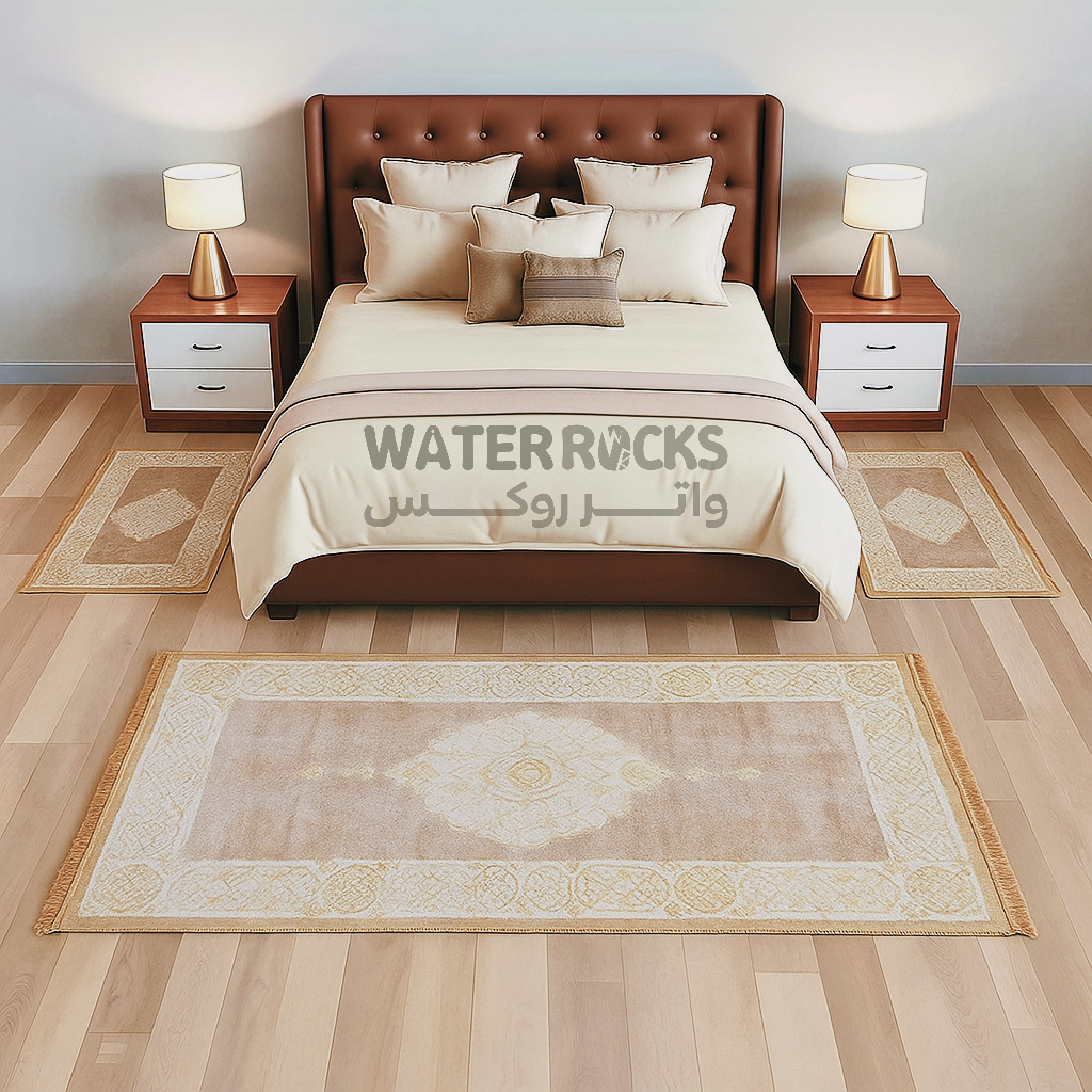 Ensemble 3 Pièces anti-tâches Descentes De Lit Doré Fond Marron
