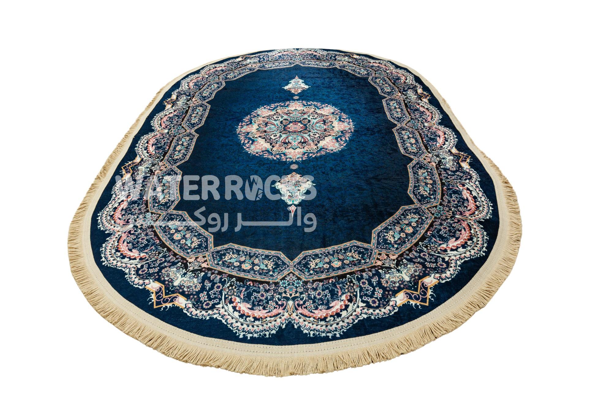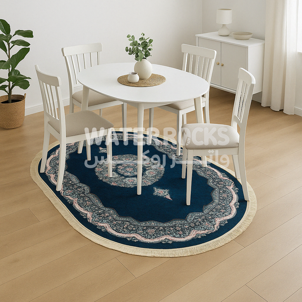 Tapis Ovale Anti-Tâches Bleu Marine motif central1,25×1,80 m